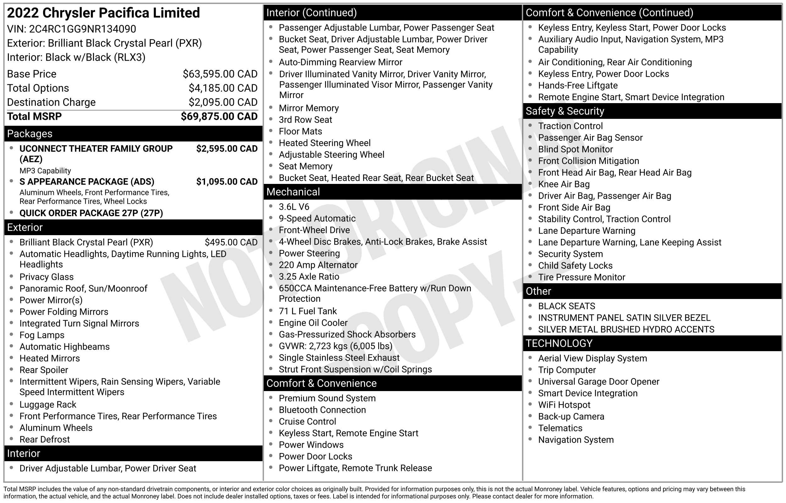 2022 Chrysler Pacifica Limited powered by a 3.6L V6 and 9-speed transmission with 92,600 kms. Nicely equipped with heated leather seats with memory settings, heated steering wheel, premium sound system, UConnect theater system, sport appearance package, panoramic roof, keyless entry, remote start, navigation and so much more.